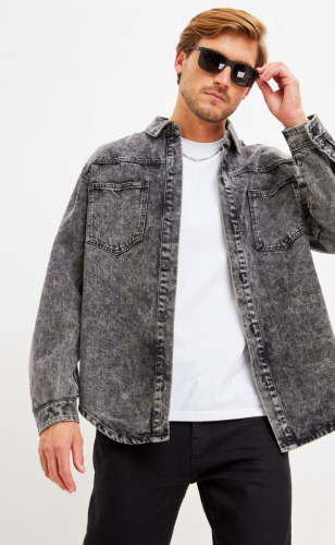 Рубашка мужская джинсовая с длинным рукавом оверсайз P311-1220-3 чёрная