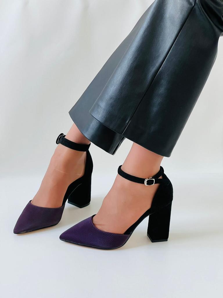 Радуга L-662 Туфли женские чер-фиолет велюр иск кожа