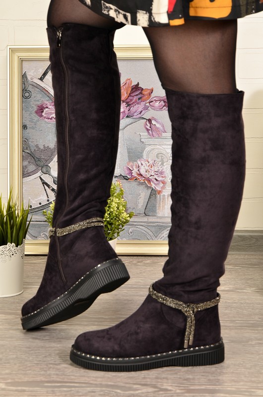 Радуга M-95-1 Ботфорты женские фиол иск велюр, подклад иск мех (по всей длине модели)