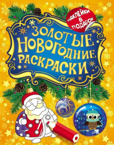 Золотые новогодние раскраски. Дед Мороз (+ наклейки)