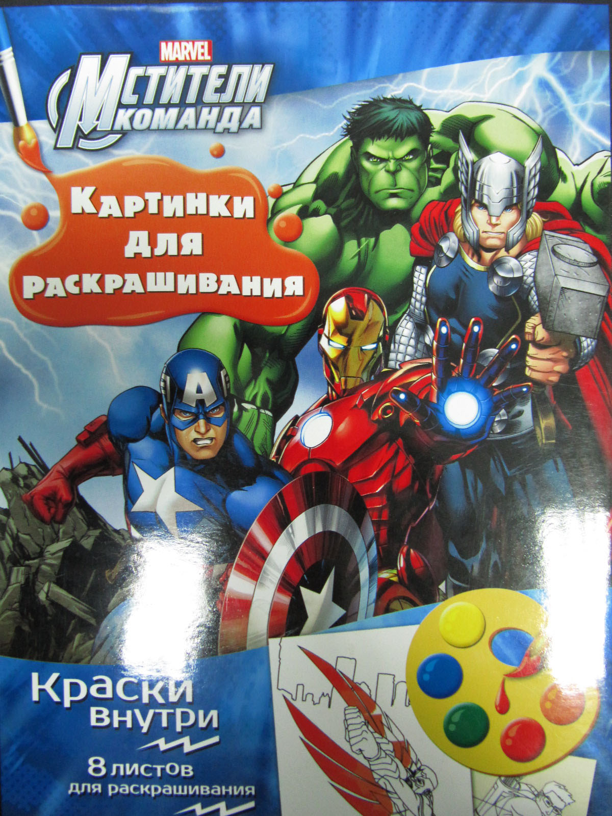 Картинки для раскрашивания 8 листов + краскиКоманда мстители
