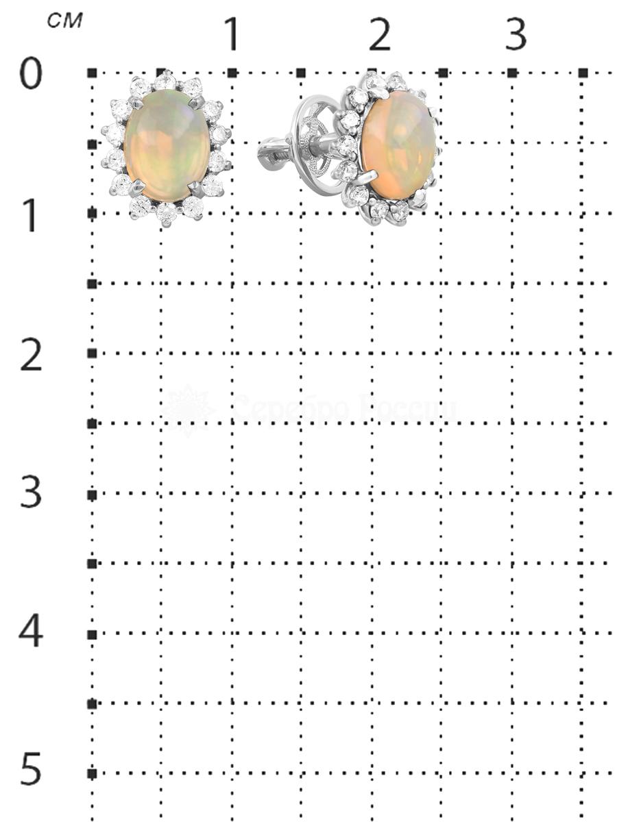 Серьги-пусеты из серебра с нат.опалом и фианитами родированные 925 пробы С-3728рк117000