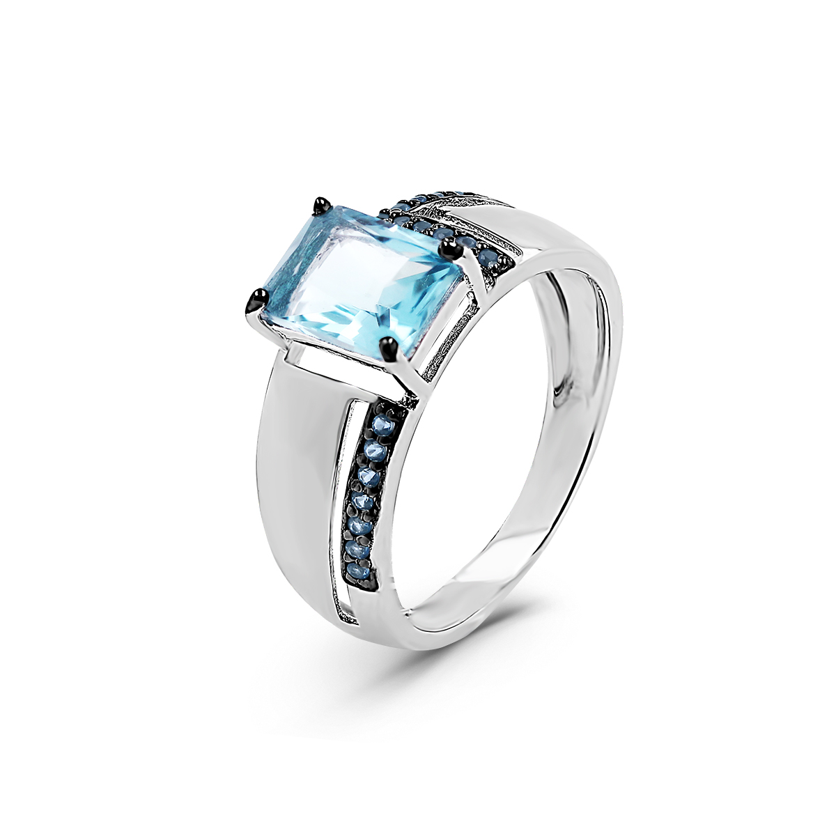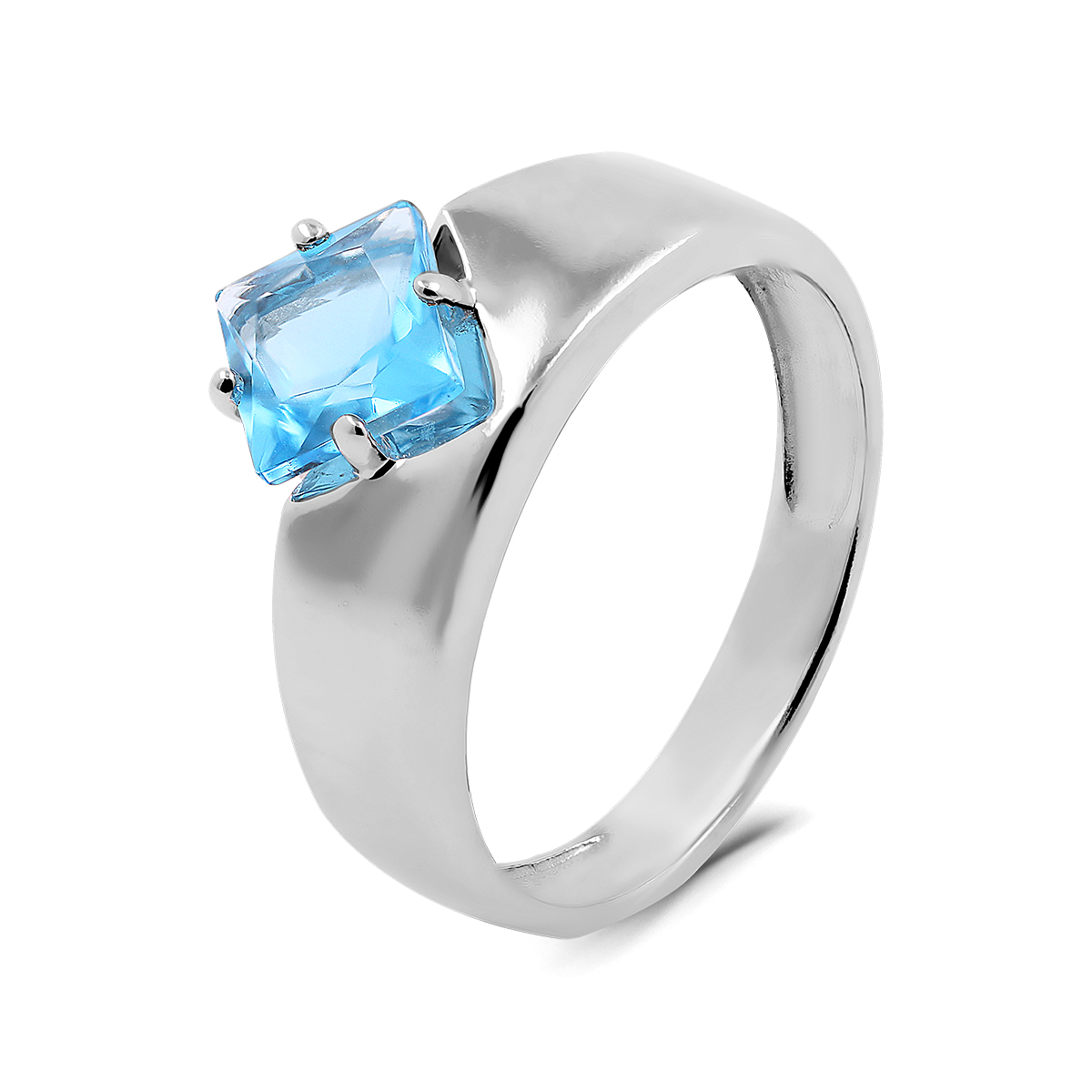 Кольцо из серебра с пл.кварцем цв.морганит родированное