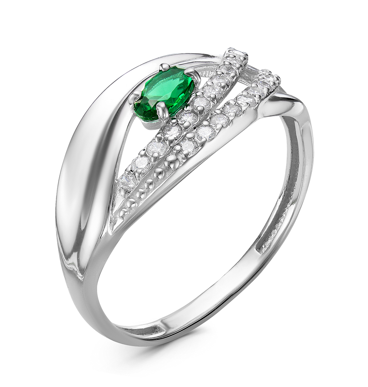 Кольцо из серебра с кварцем изумруд и фианитами родированное