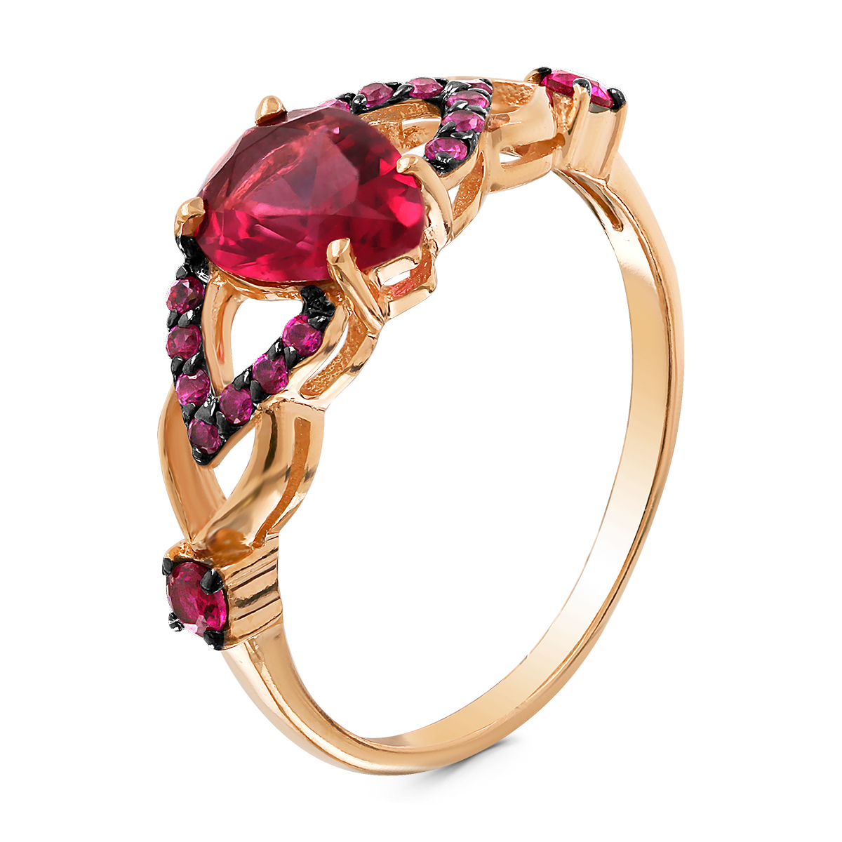 Кольцо из золочёного серебра с пл.кварцем цв.рубин и корундом рубиновым