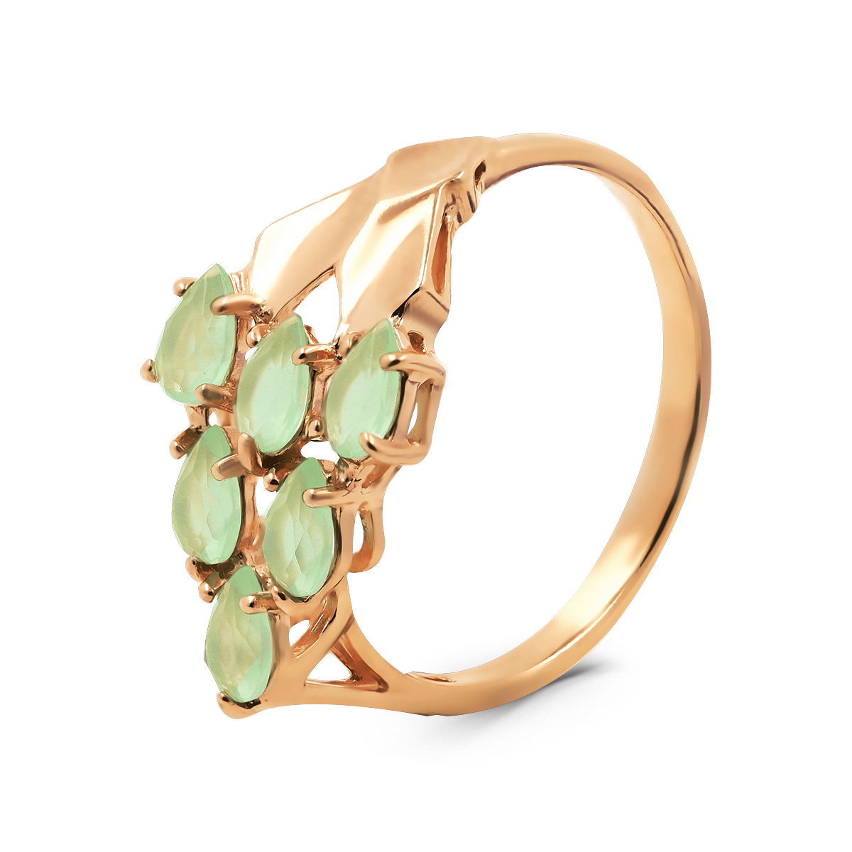 Кольцо из золочёного серебра с пл.кварцем цв.зеленый лунный