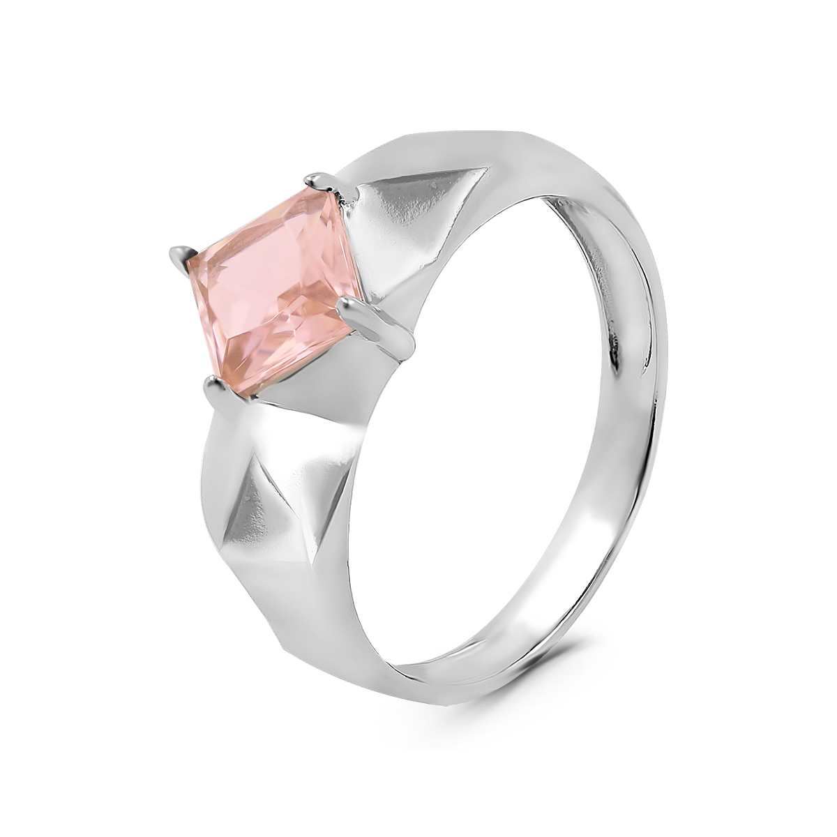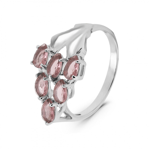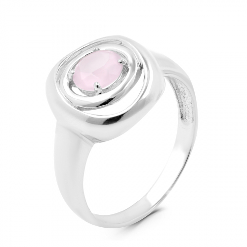 Кольцо из серебра с пл.розовым кварцем родированное