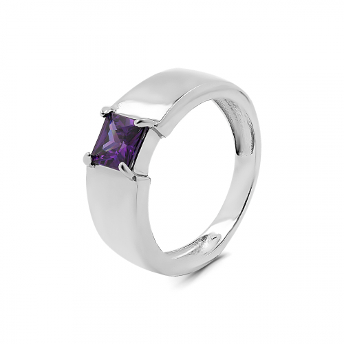 Кольцо из серебра с пл.кварцем цв.аметист родированное