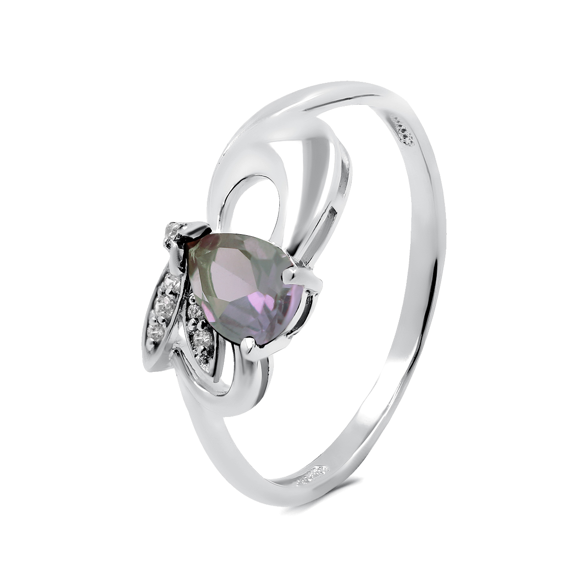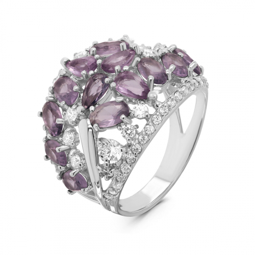 Кольцо из серебра с синт.александритом и фианитами родированное