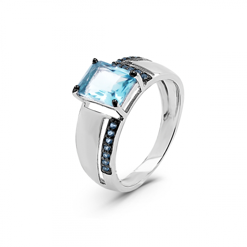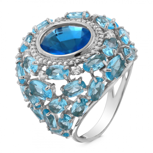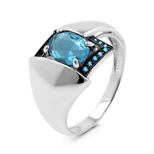 Кольцо из серебра с пл. кварцем цв. топаз и фианитами родированное