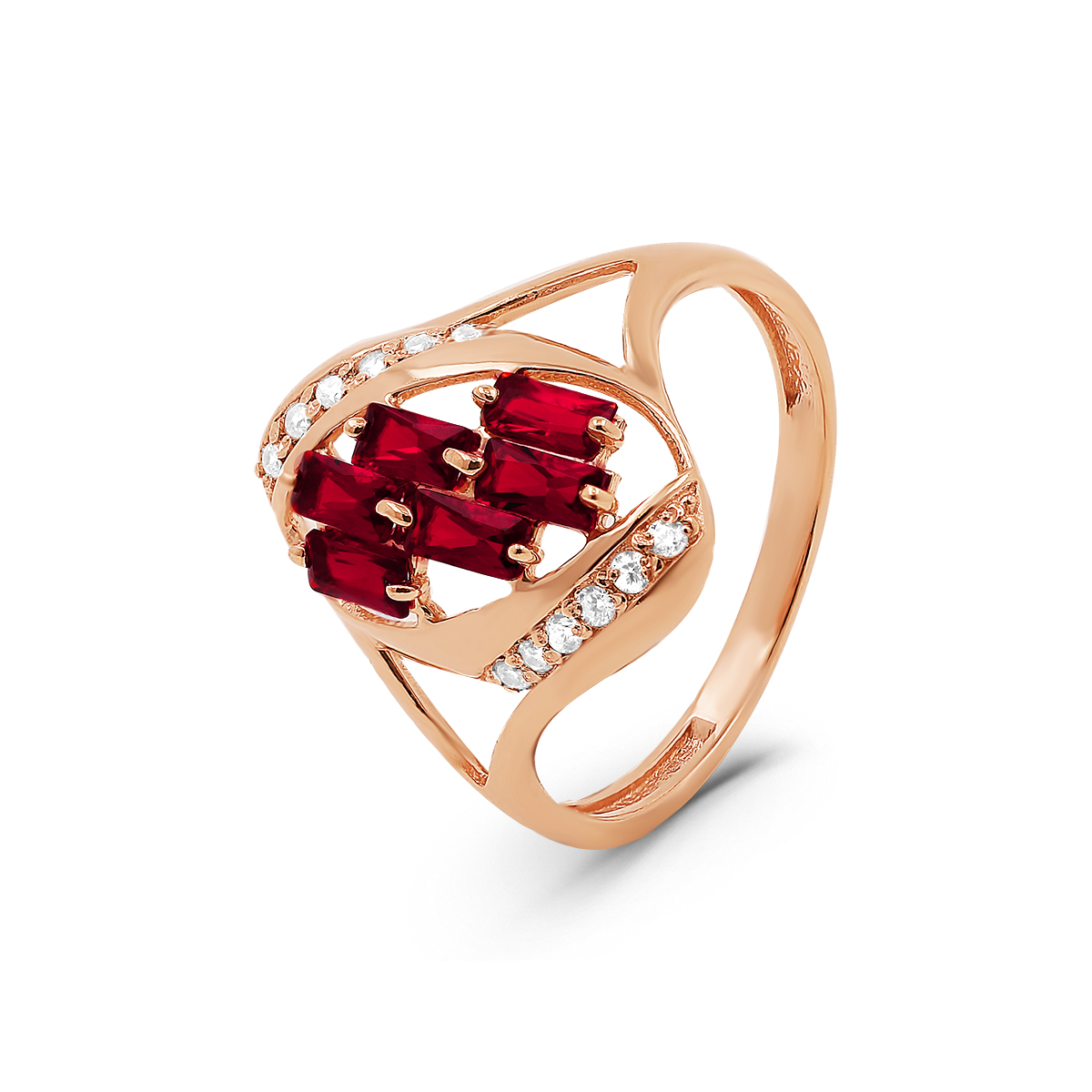 Кольцо из золочёного серебра с пл. кварц. цв. гранат и фианитами