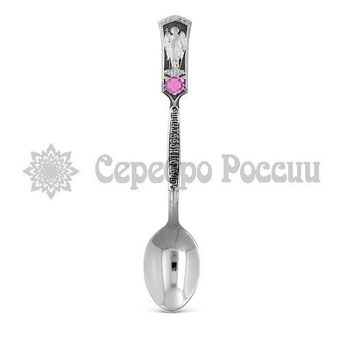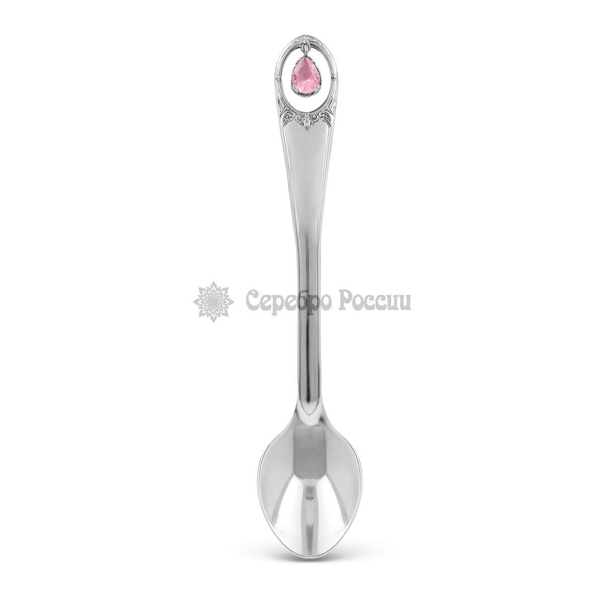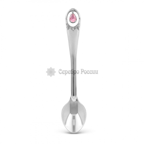 Ложка чайная из серебра с розовым фианитом, 12 см Л-025-05221
