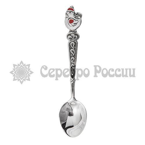 Ложка детская из серебра "Утёнок" - возможна красная или синяя эмаль 02-015д