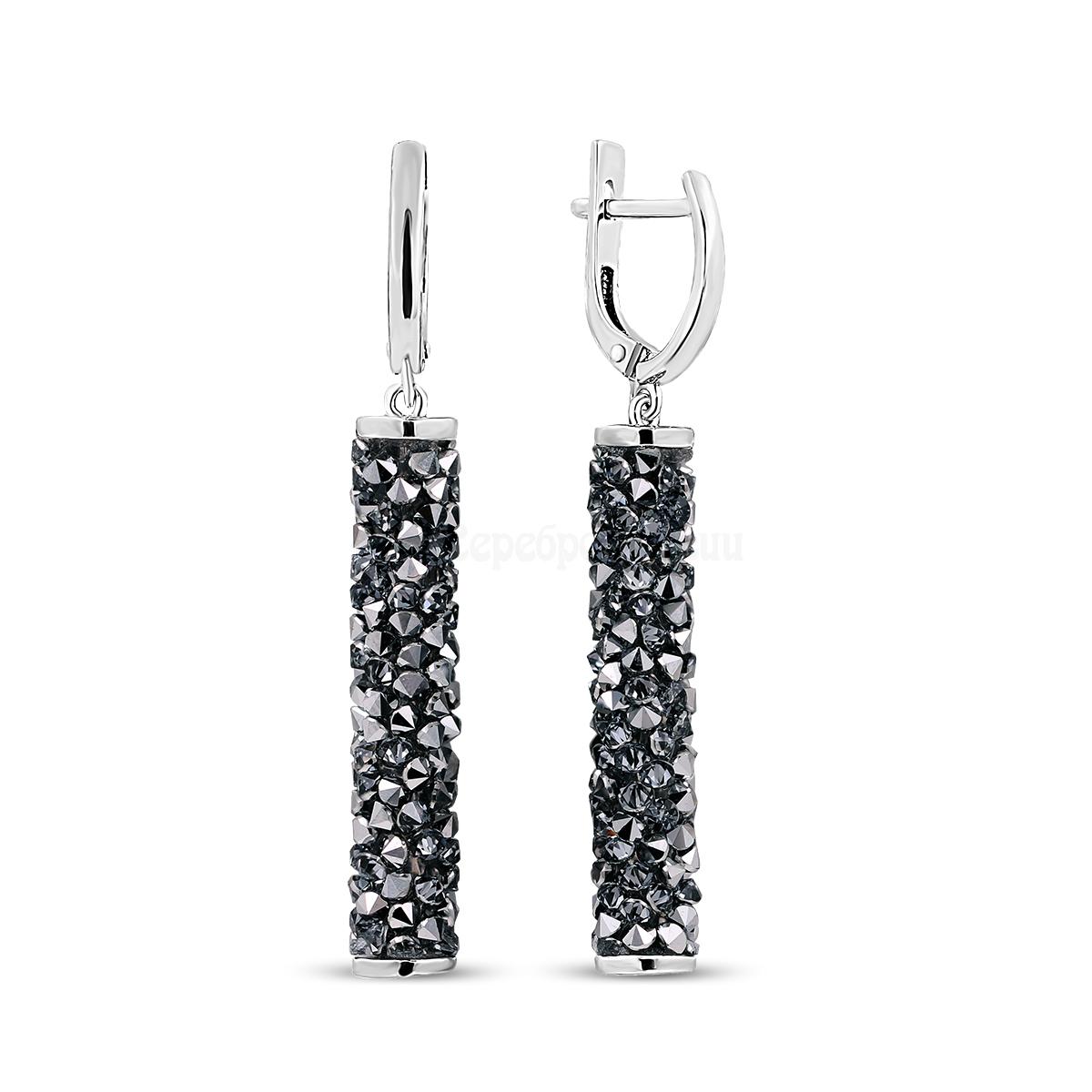 Серьги из серебра с кристаллами Swarovski родированные с-01715-001BBL