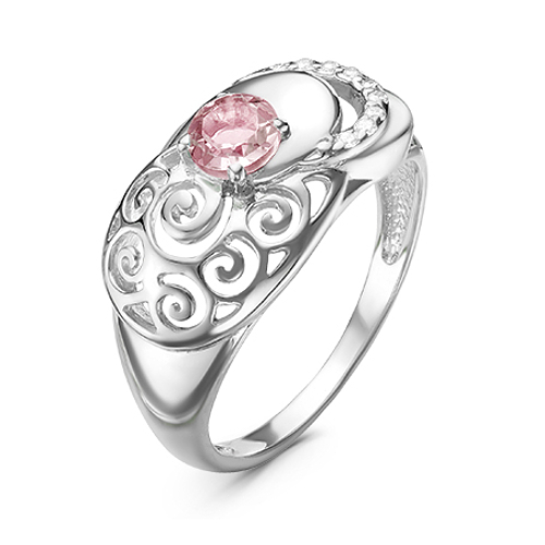 Кольцо из серебра с кварцем морганит и фианитами родированное