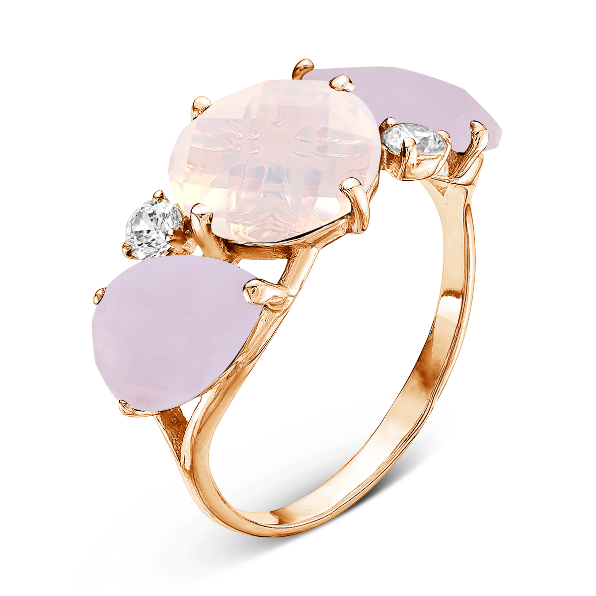 Кольцо из золочёного серебра с пл.кварцем цв.лунный камень,лаванда и фианитами