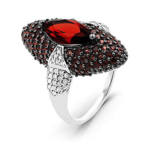 Кольцо из серебра с кварцем гранат и фианитами родированное