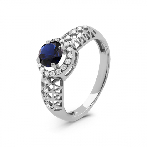 Кольцо из серебра с гт. кварцем цв. сапфир и фианитами родированное