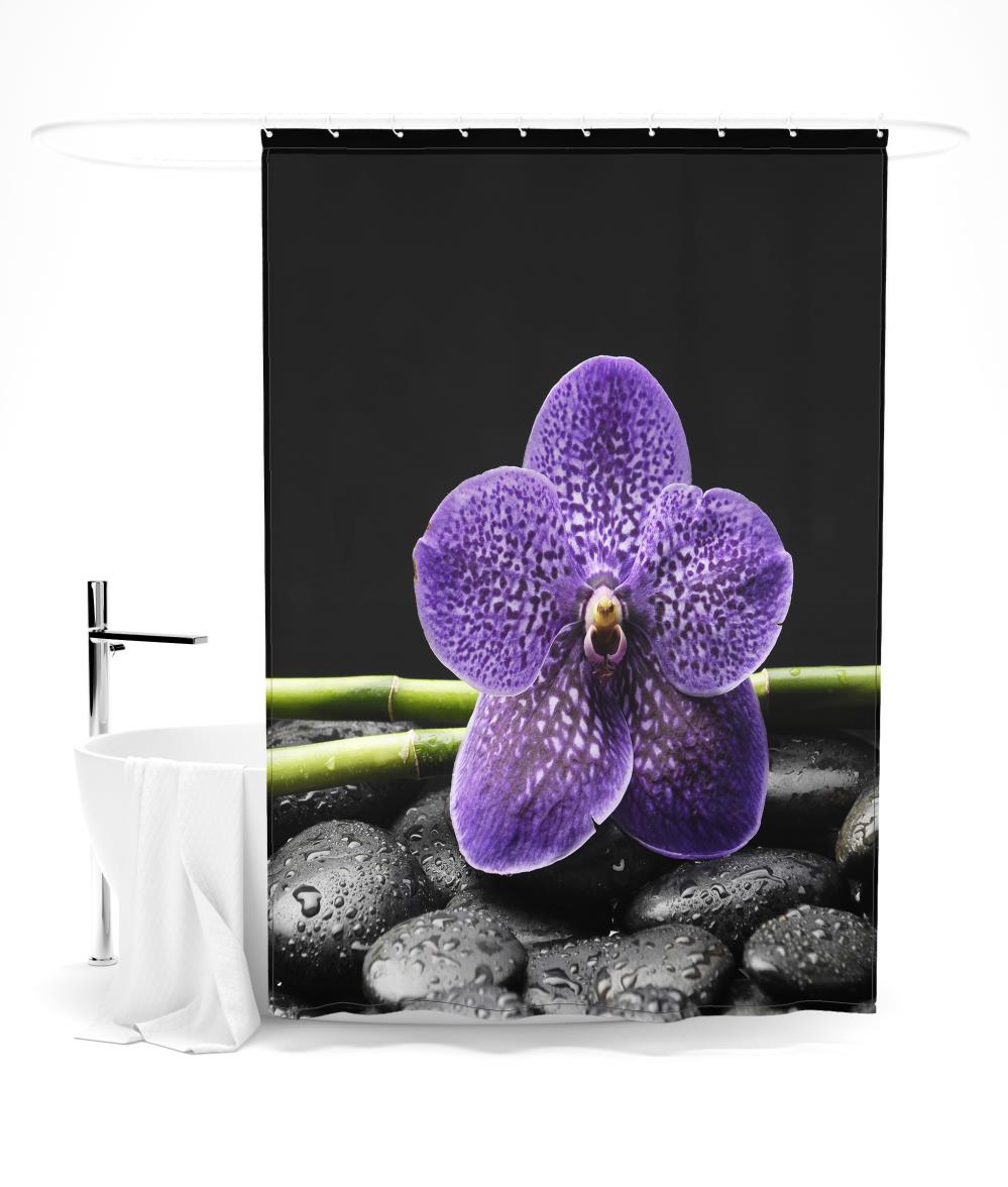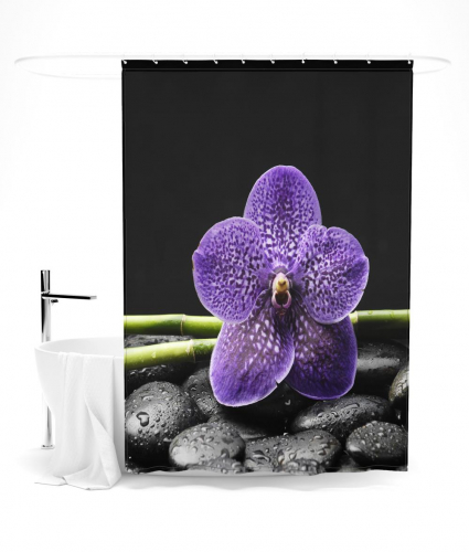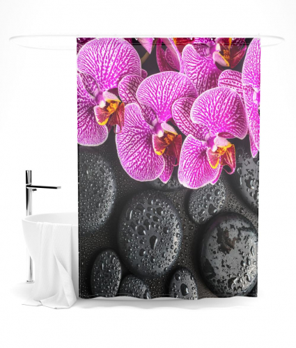 Шторка для ванной "Орхидея на чёрых камнях", 145х180 см арт. ШТОК056-14291