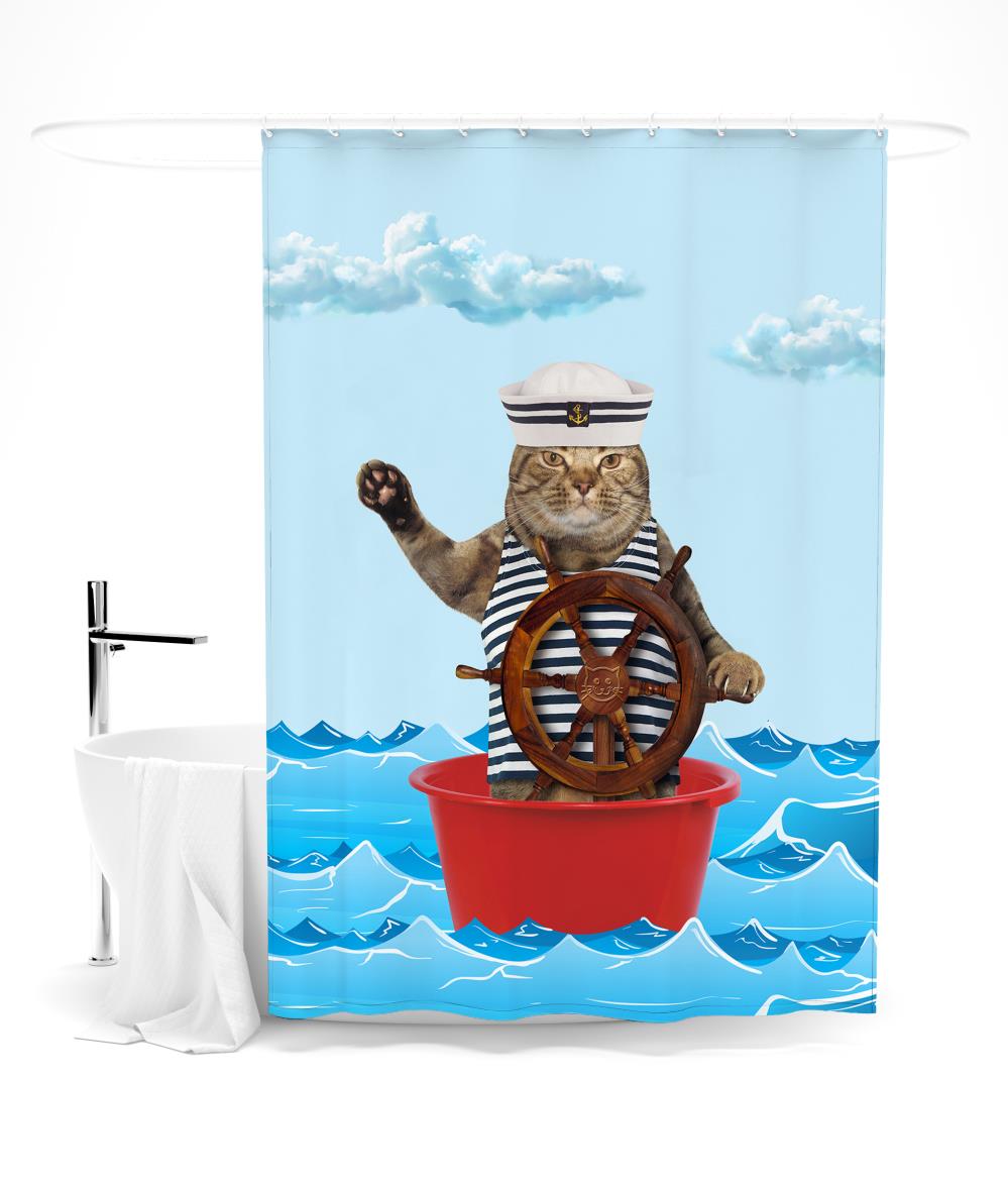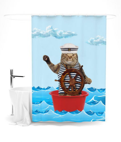 Шторка для ванной "Кот-капитан" арт. ШТОК056-16538