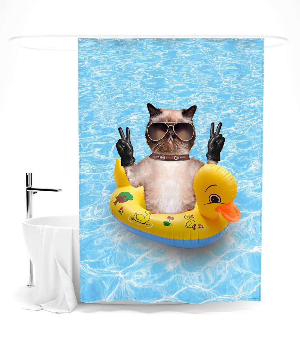 Шторка для ванной "Кот в бассейне" арт. ШТОК056-16571