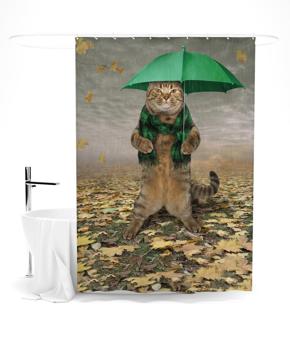 Шторка для ванной "Кот под дождем" арт. ШТОК056-16629