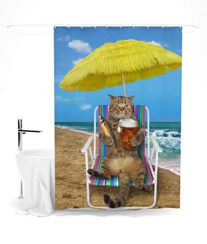Шторка для ванной "Отдых настоящего кота" арт. ШТОК056-16547