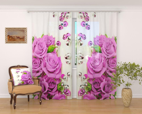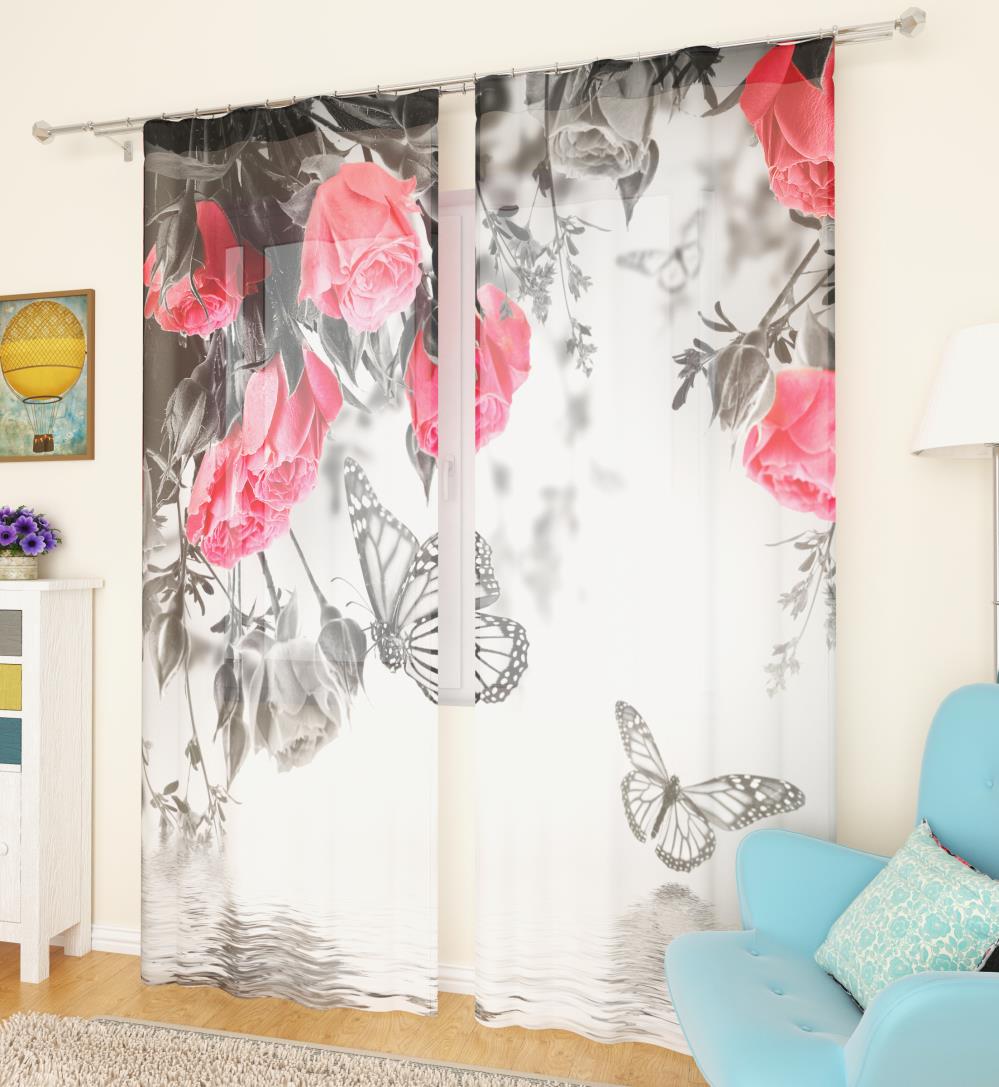 Фототюль "Розы и жемчуг", 145*260 2 шт.