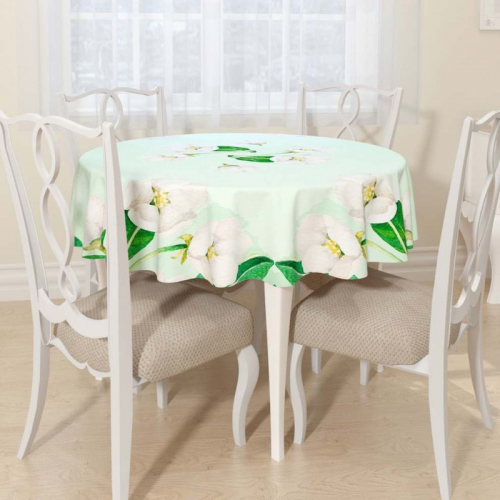 Скатерть круглая "Нежная плюмерия ", D145 см