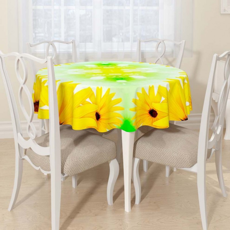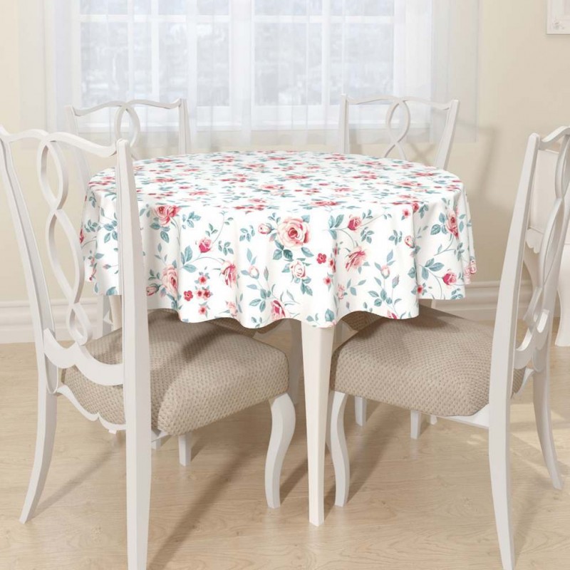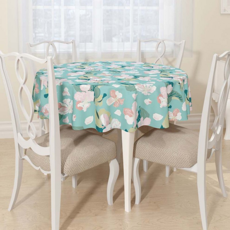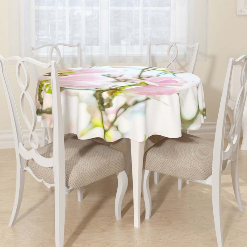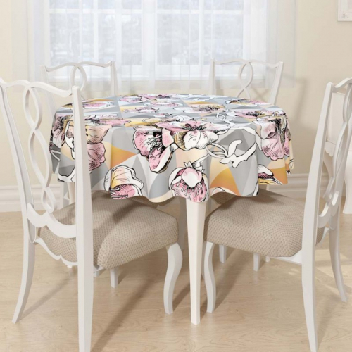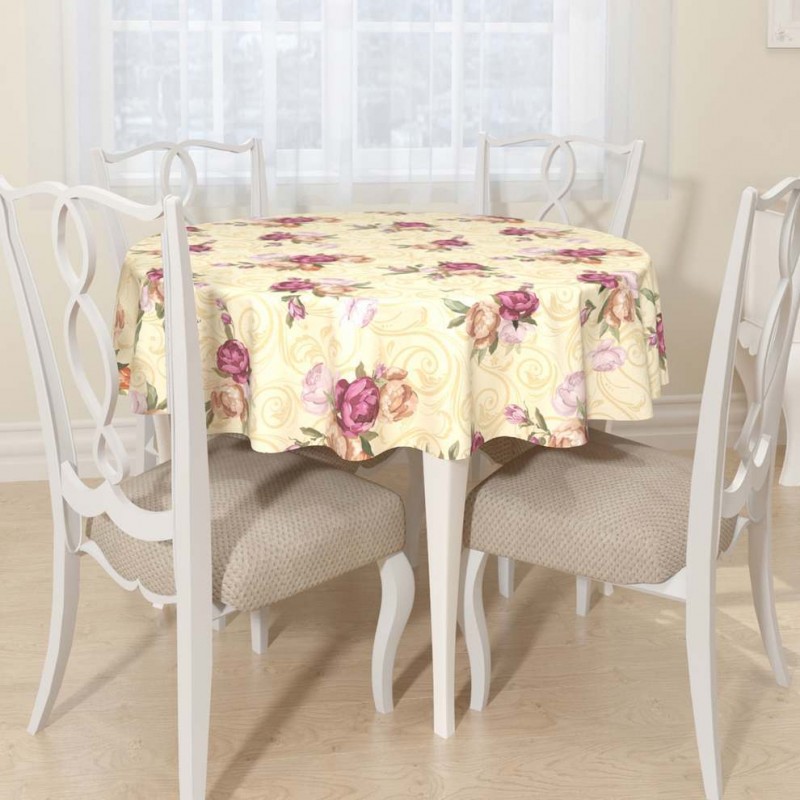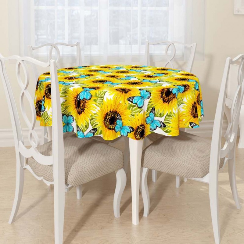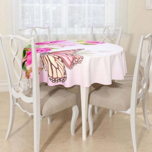 Скатерть круглая "Стайка бабочек на розах", D145 см