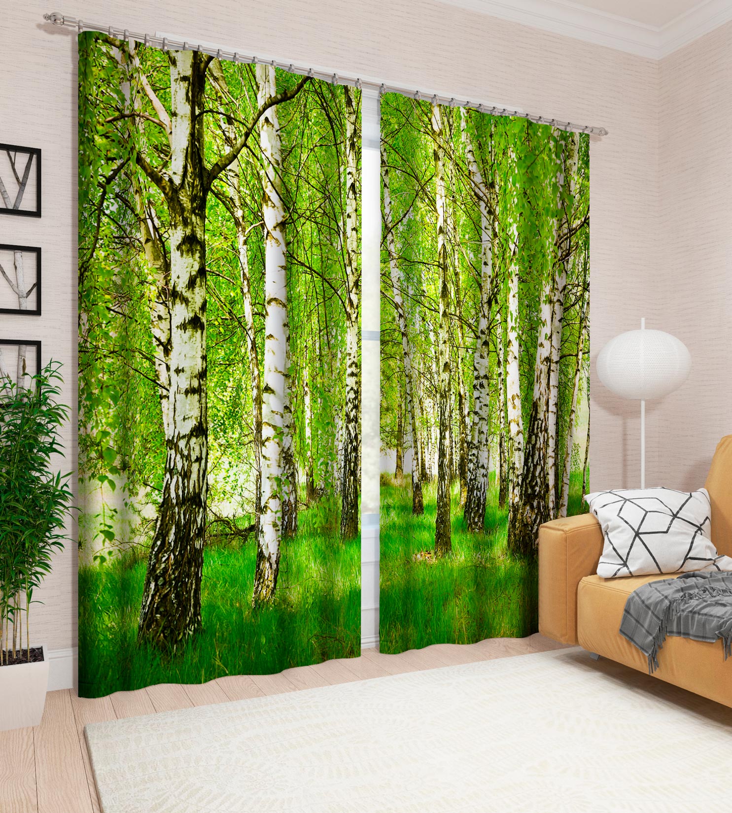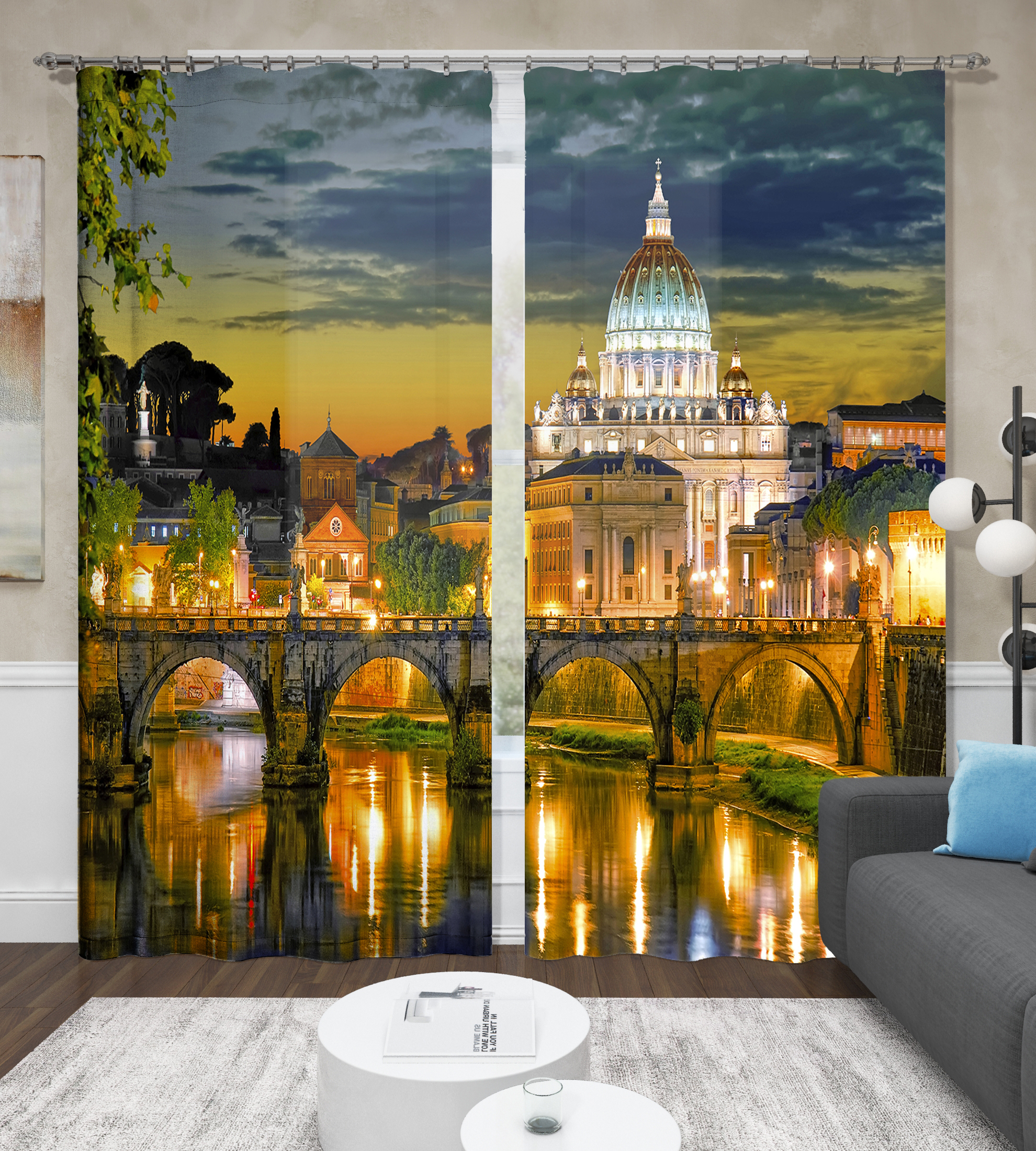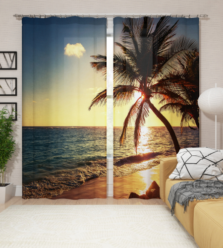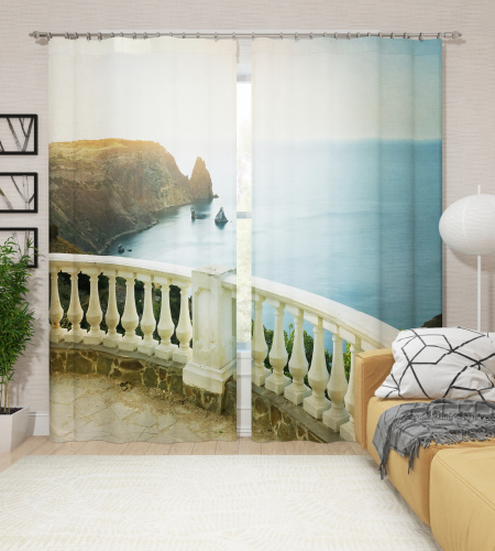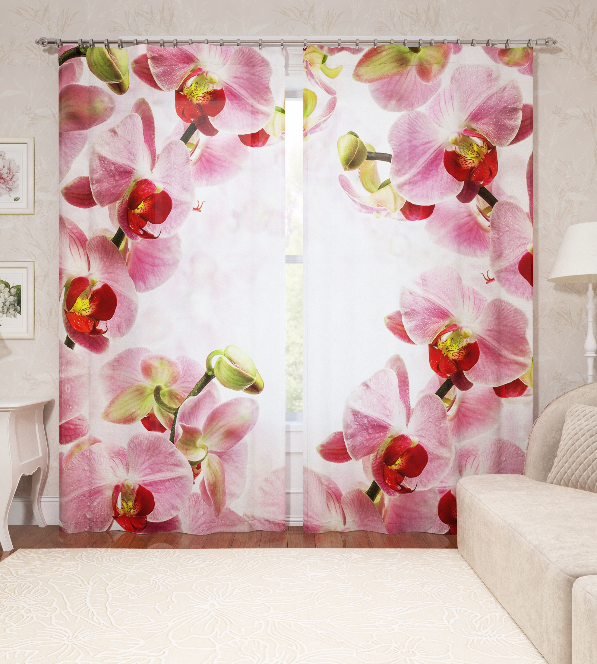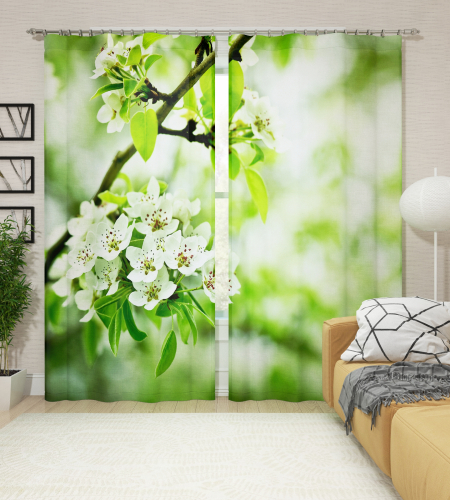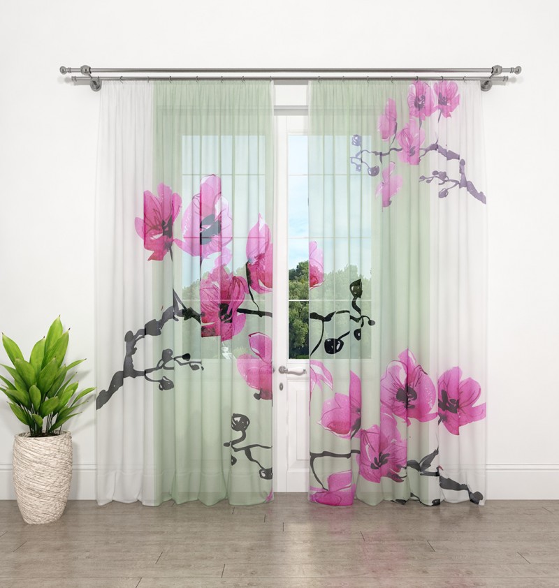 Тюль полупрозрачный "Акварельная сакура" 145*260 2шт.