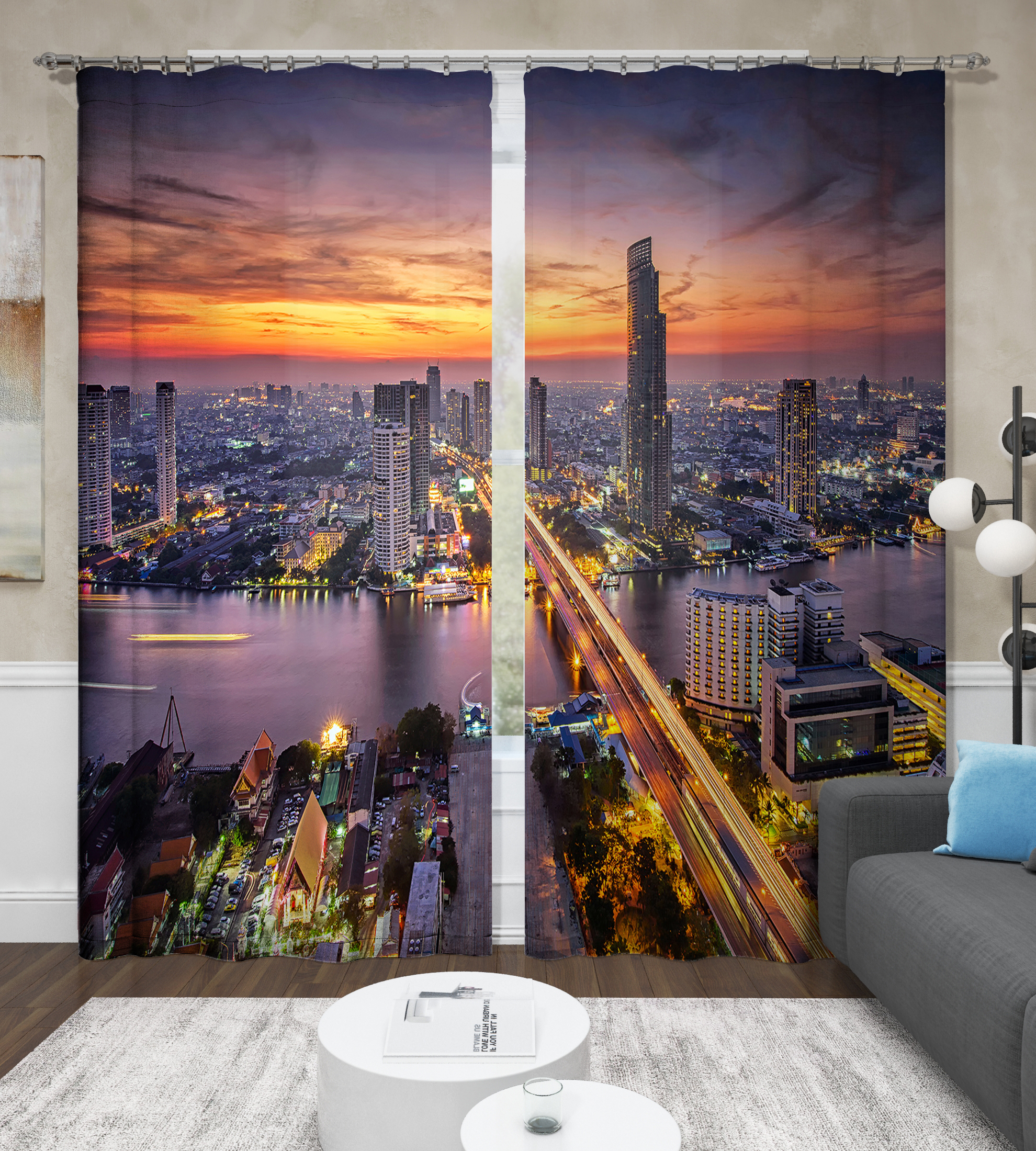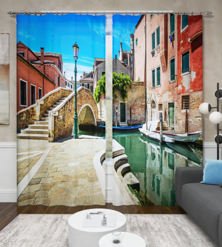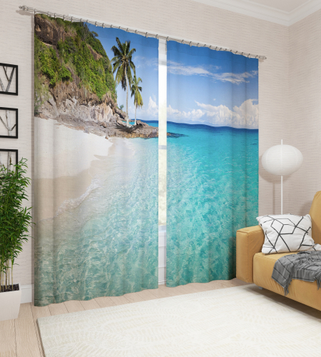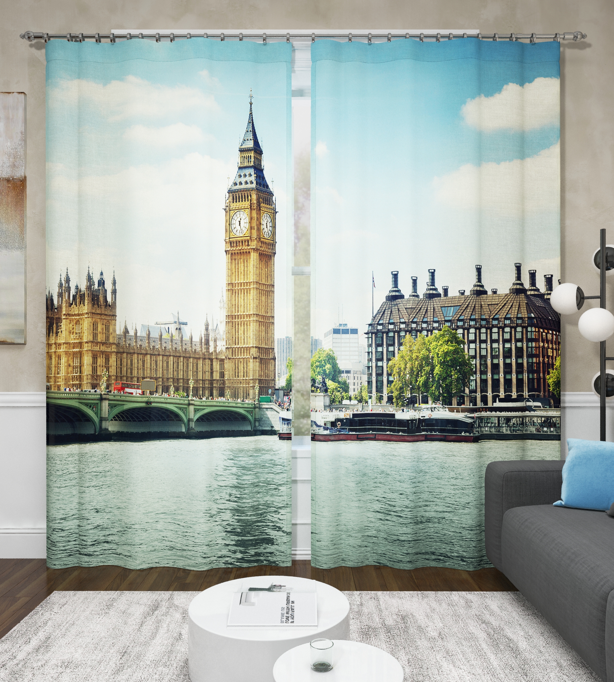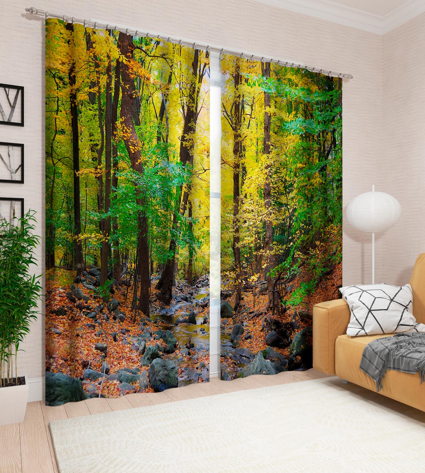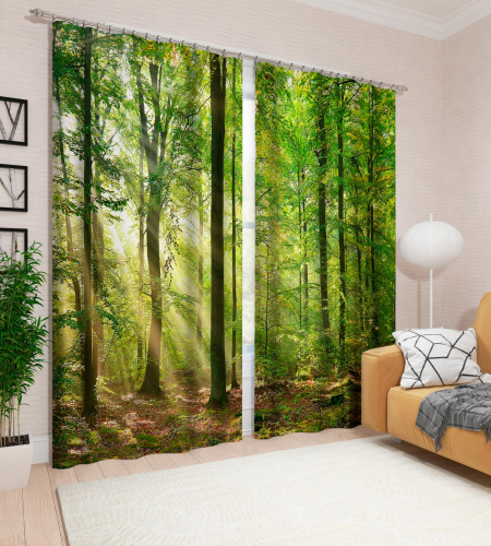 Тюль полупрозрачный "Акварельная сакура" 145*260 2шт.