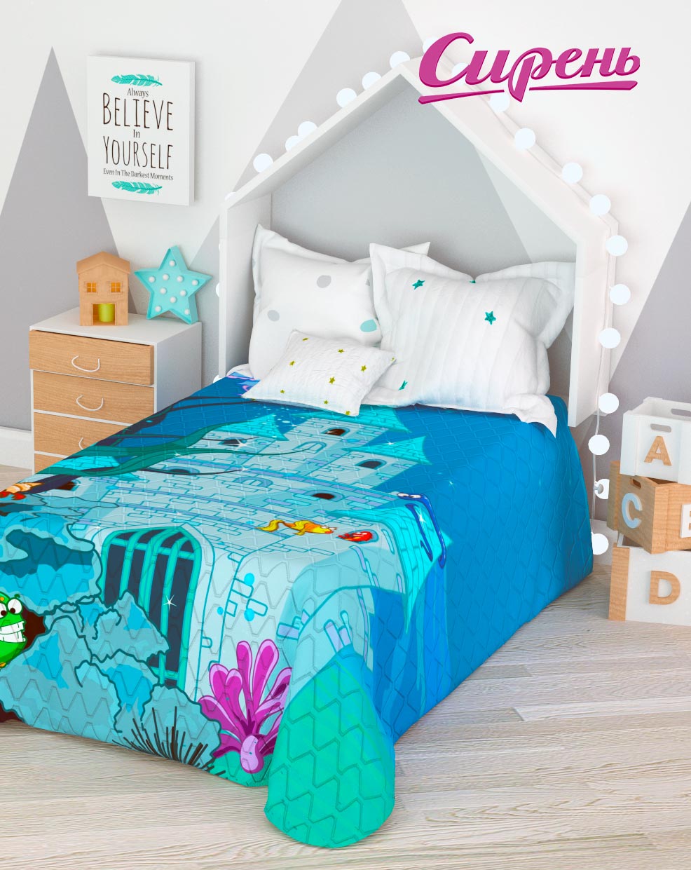 Покрывало стеганое "Аквариум", 145*210 см.