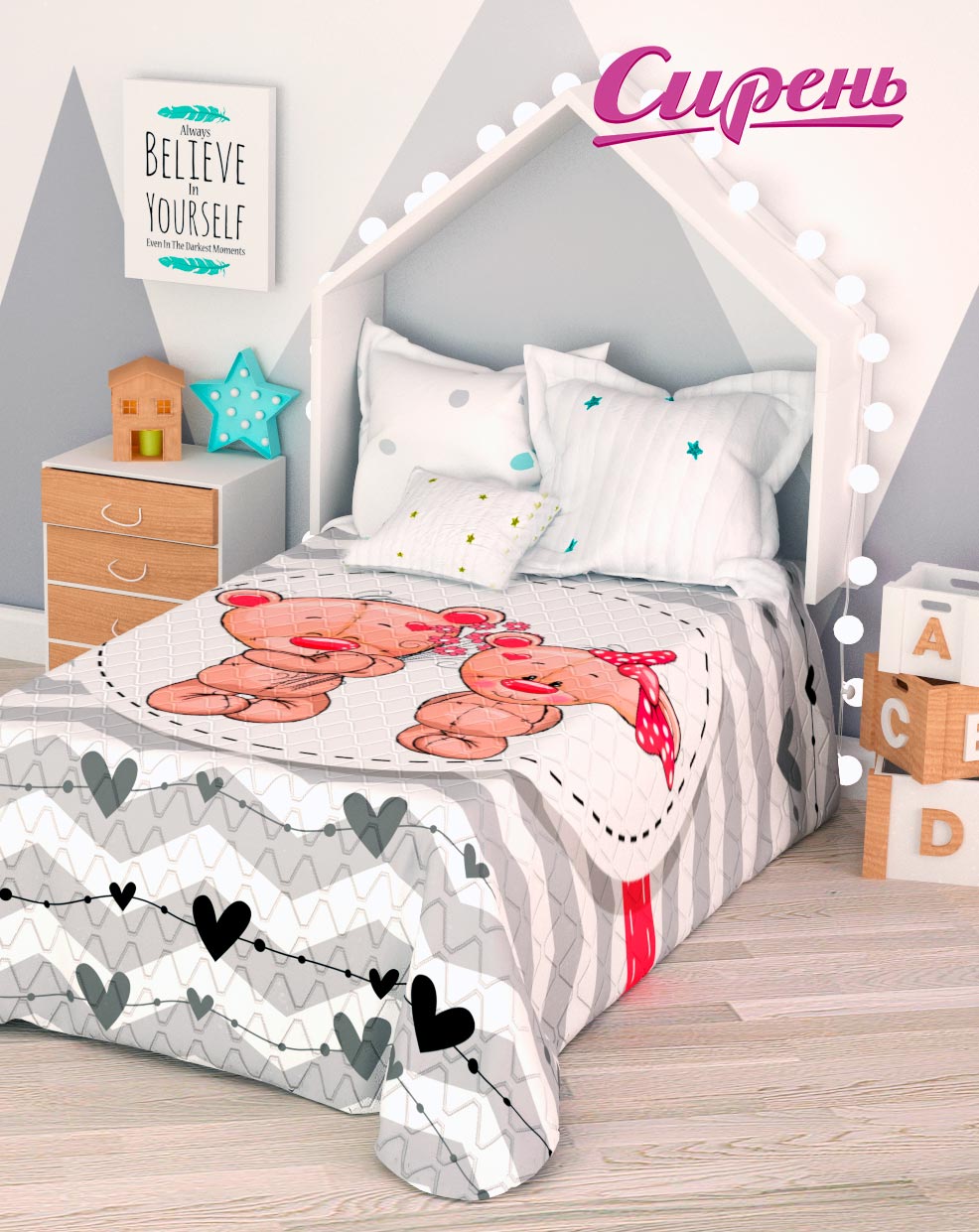 Покрывало стеганое "Спящий Мишка", 1,5-спальное