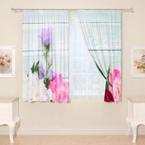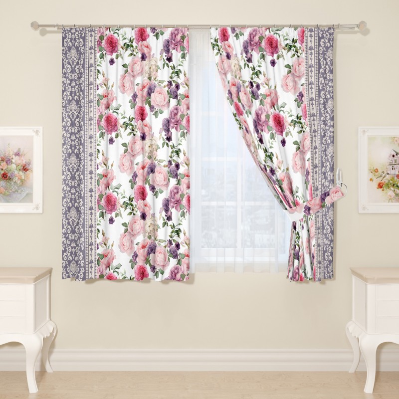 Фотошторы "Фиалки и розы", 145*160 2 шт.