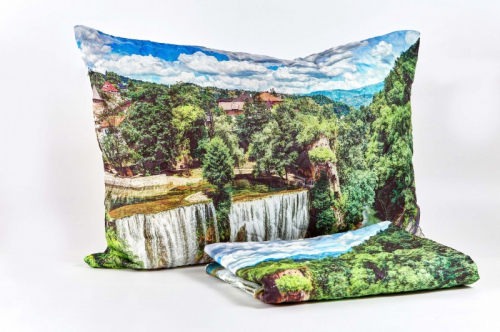 Наволочка декоративная "Водопад в городе", 50*70 см., стеганая