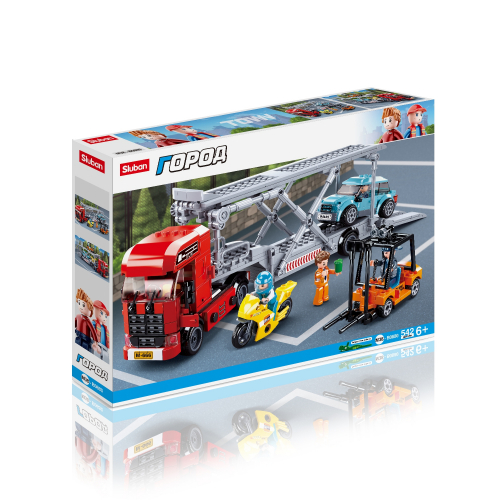 450 р. 1424 р. 1 шт. доступно/ Sluban, Конструктор пластмассовый "Город: Трейлер с машинами" (542 дет.)