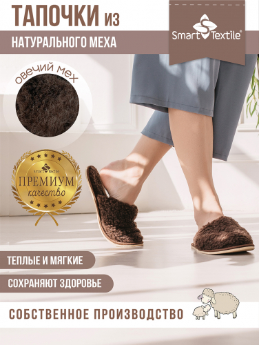 Тапочки "Домашнее тепло" из овечьего меха на трикотаж. основе