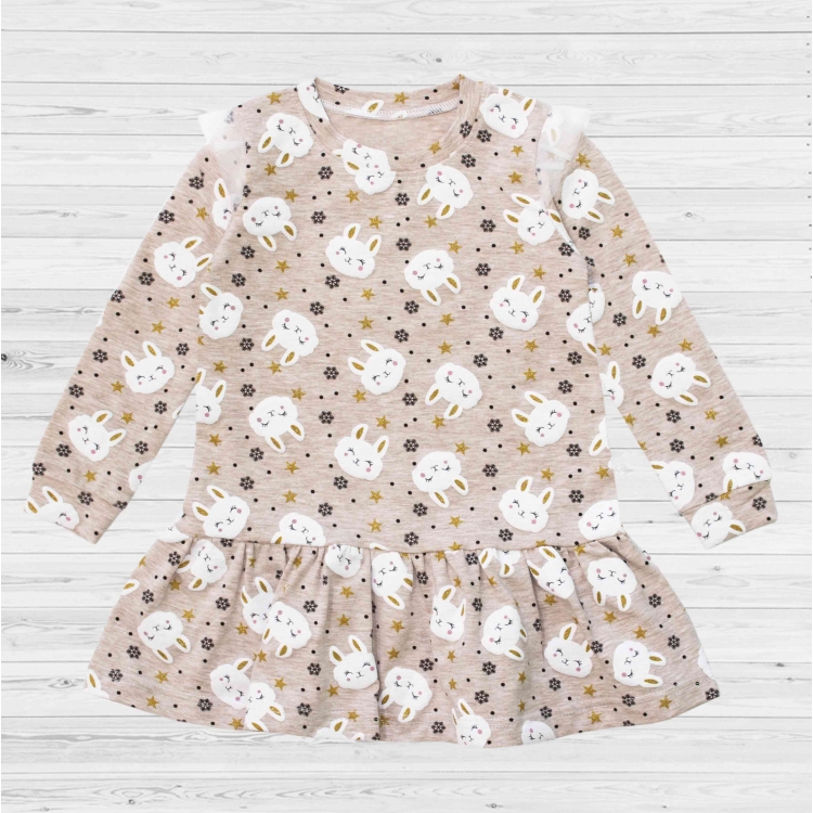 Платье 2211-120 беж/меланж/набивка зайчики
