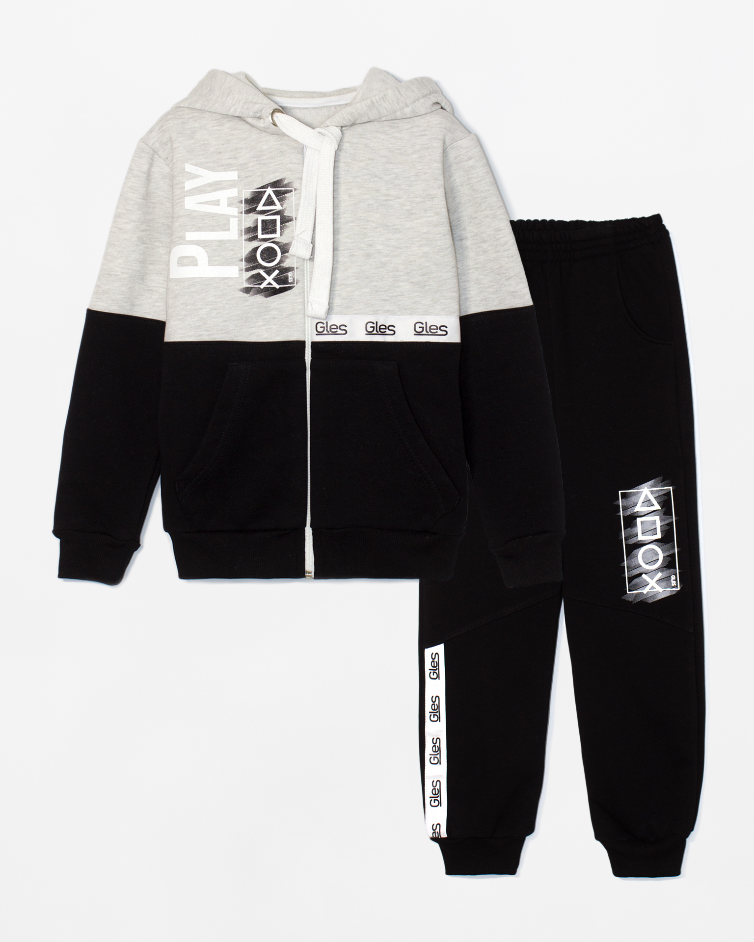 Костюм/сп 3134-203 футер начес 3-х нитка PLAY серый меланж/черный