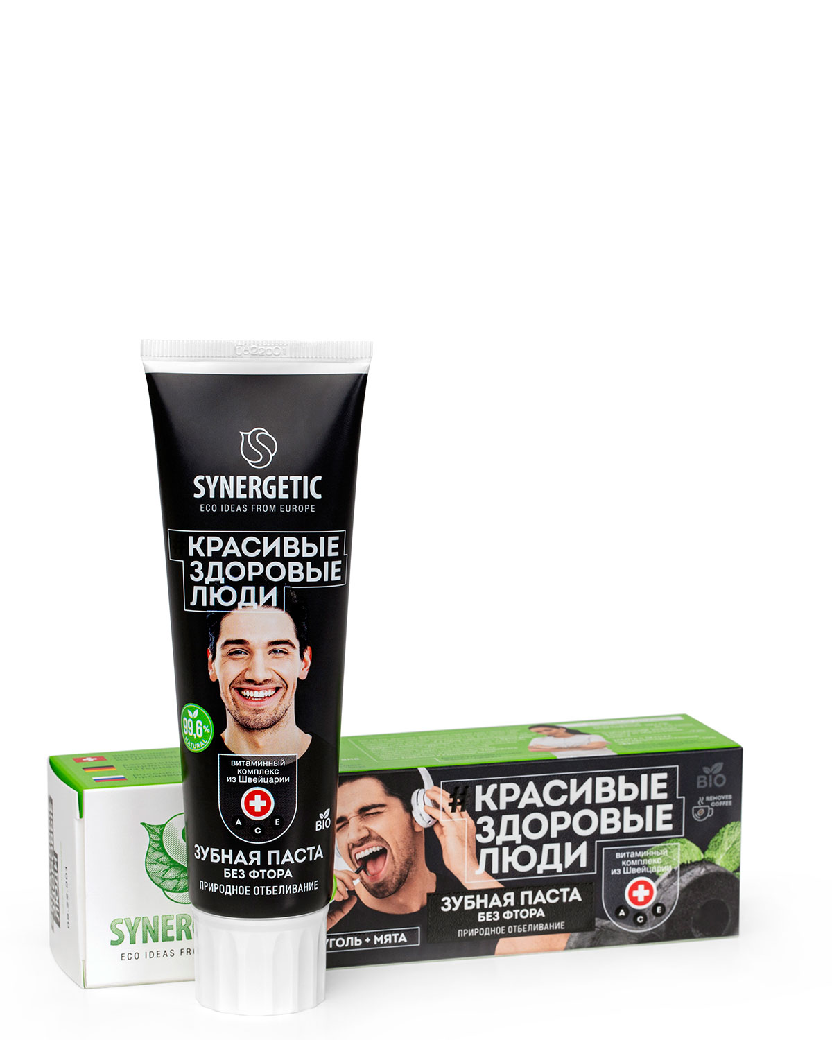 SYNERGETIC Зубная паста Природное отбеливание, 100г (уголь+мята)