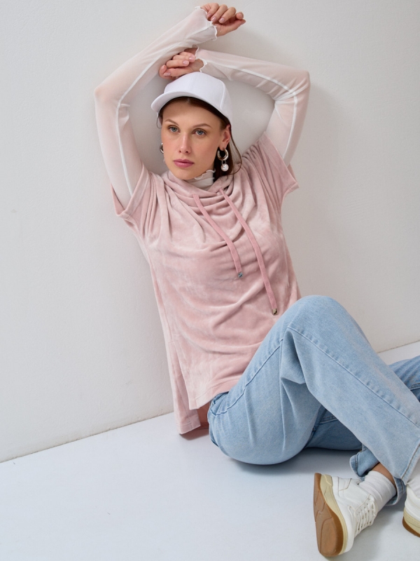 Футболка из велюра с капюшоном