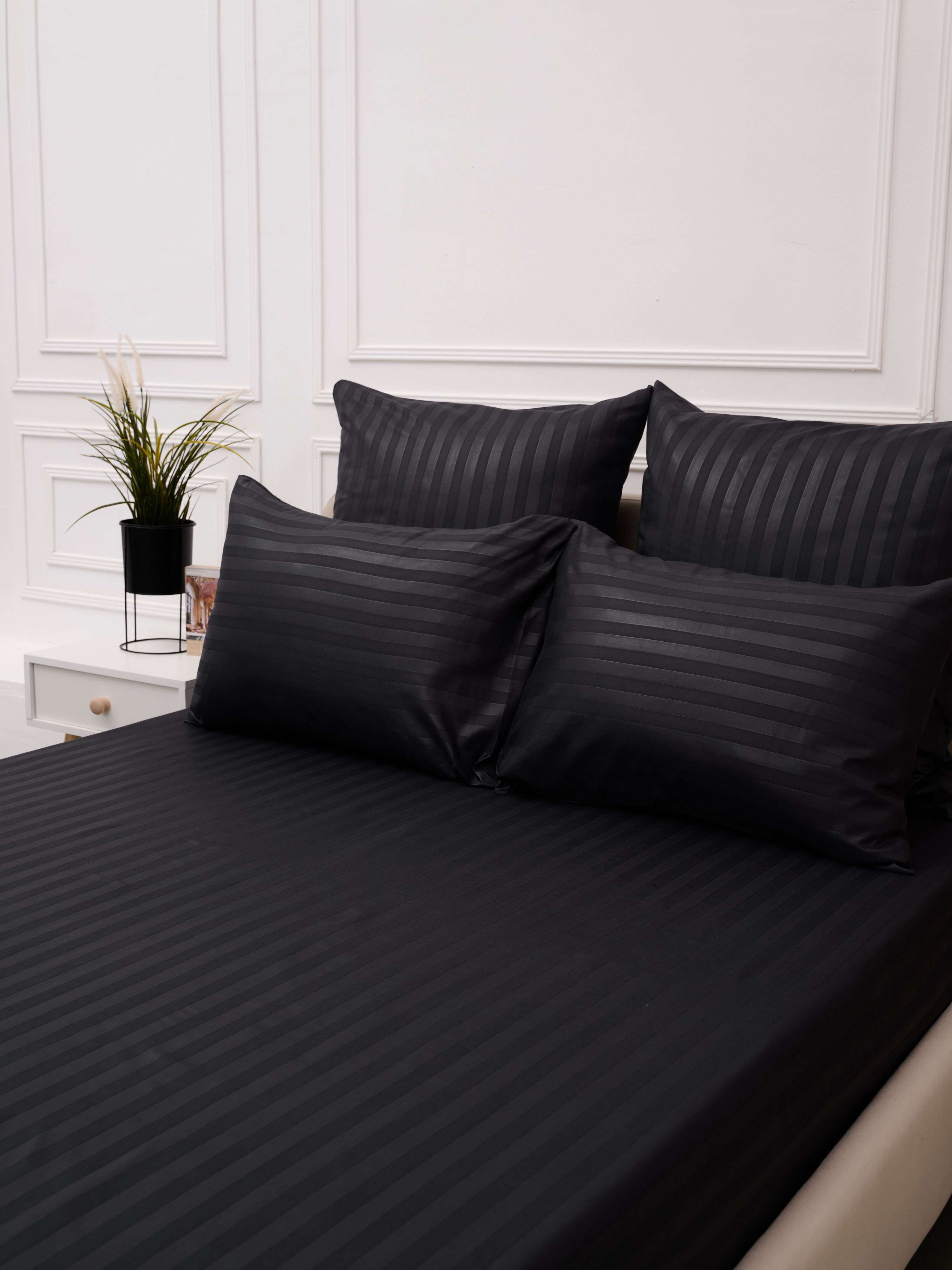 Простыня на резинке микрофибра страйп - Графит (Сток)