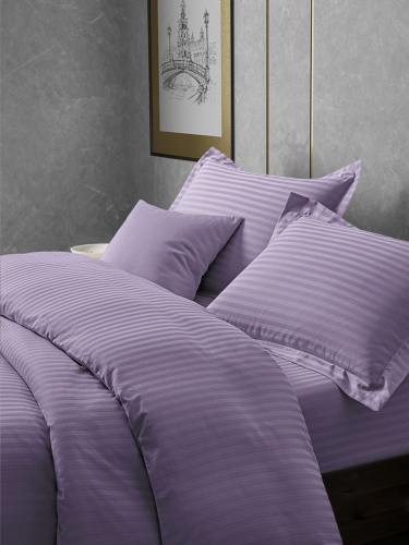 Постельное белье сатин страйп с простыней на резинке - Лаванда