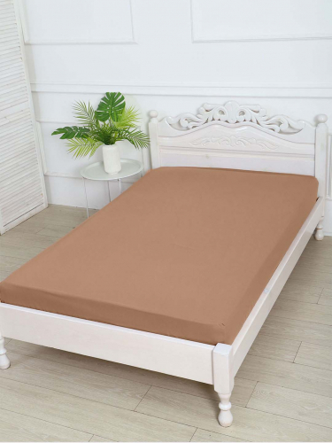 Простыня на резинке из поплина гладкокрашеного - Горький шоколад