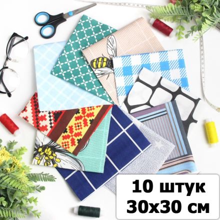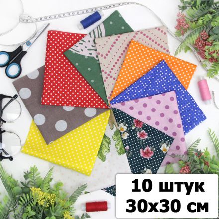 Набор ткани для пэчворка и шитья Ассорти 30х30 (10 шт)