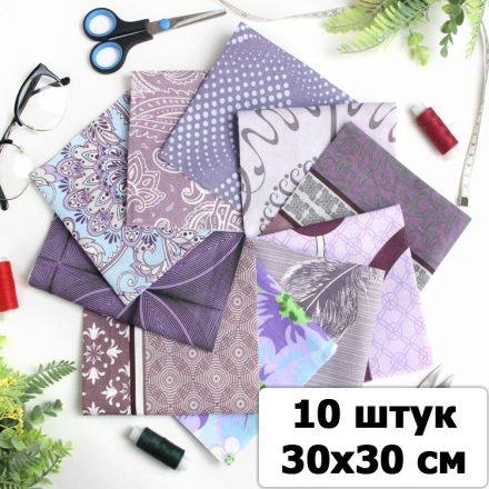 Набор ткани для пэчворка и шитья Оттенки светло-фиолетового 30х30 (10 шт)