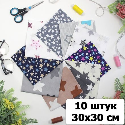 Набор ткани для пэчворка и шитья Звезды 30х30 (10 шт)
