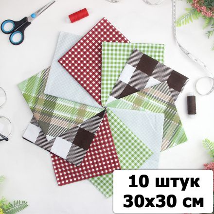 Набор ткани для пэчворка и шитья Клетка 30х30 (10 шт)