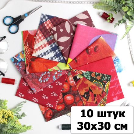 Набор ткани для пэчворка и шитья Оттенки темно-красного 30х30 (10 шт)